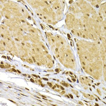 - Immunohistochemistry of paraffin-embedded human stomach cancer using S100A4 antibody at dilution of 1:100 (x400 lens).