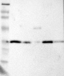 - Western blot analysis of antibody specificity using a routine panel composed of IgG/HSA-depleted human plasma and protein lysates from selected human tissues and cell lines.