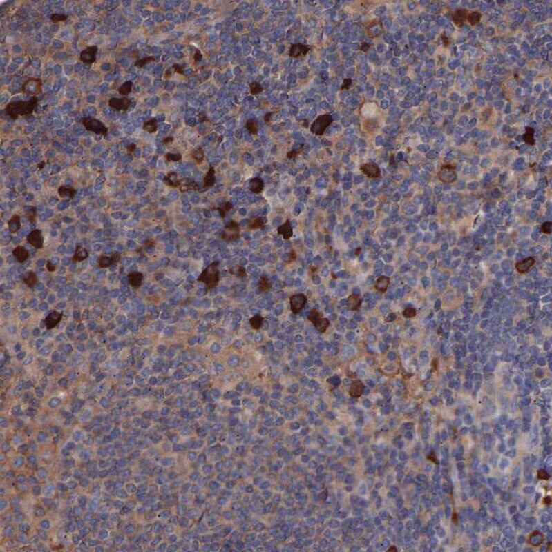 - Immunohistochemical analysis of CI091 in human lymph node using CI091 Polyclonal Antibody (Product # PA5-53560) shows strong cytoplasmic/ membranous positivity in a small subset of lymphoid cells.