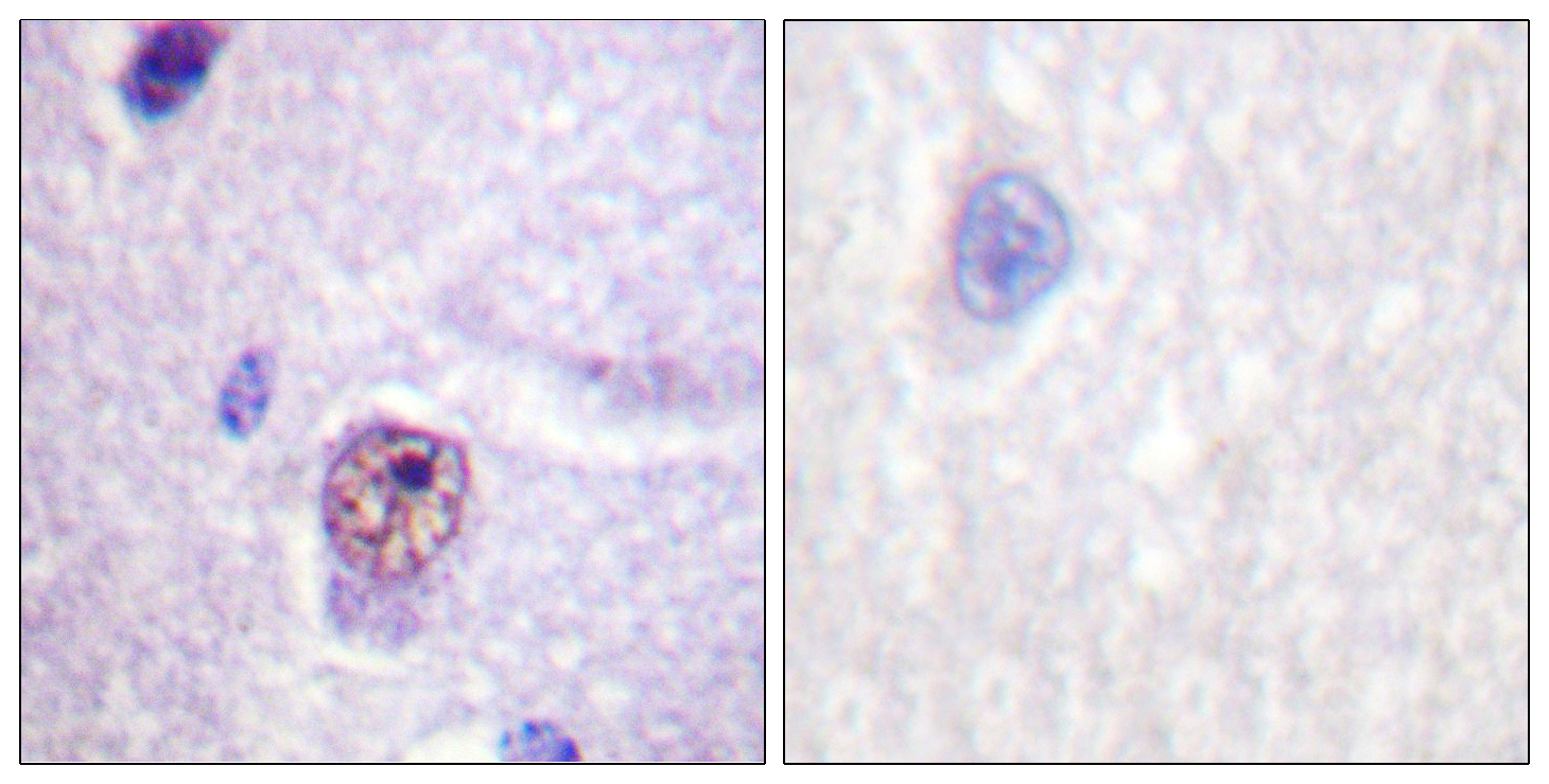- Immunohistochemistry analysis of paraffin-embedded human brain tissue, using SF1 Antibody. The picture on the right is blocked with the synthesized peptide.