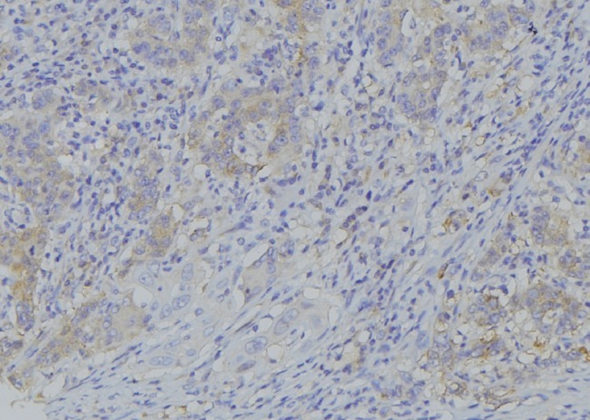 - 1:100 staining human gastric tissue by IHC-P. The sample was formaldehyde fixed and a heat mediated antigen retrieval step in citrate buffer was performed. The sample was then blocked and incubated with the antibody for 1.5 hours at 22°C. An HRP conjugated goat anti-rabbit antibody was used as the secondary.