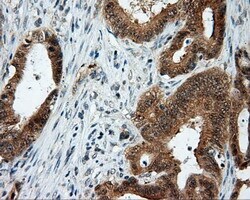 - Immunohistochemical staining of paraffin-embedded Adenocarcinoma of Human colon tissue using anti-LIPG mouse monoclonal antibody. (Heat-induced epitope retrieval by 10mM citric buffer, pH6.0, 100°C for 10min, TA501041)