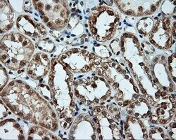 - Immunohistochemical staining of paraffin-embedded human Kidney tissue within the normal limits using anti-LIPG mouse monoclonal antibody. (Heat-induced epitope retrieval by 10mM citric buffer, pH6.0, 100°C for 10min, TA501041)