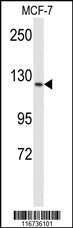- Western blot analysis of VGFR1 Antibody in MCF-7 cell lysates (35ug/lane). VGFR1 (arrow) was detected using the purified Pab.