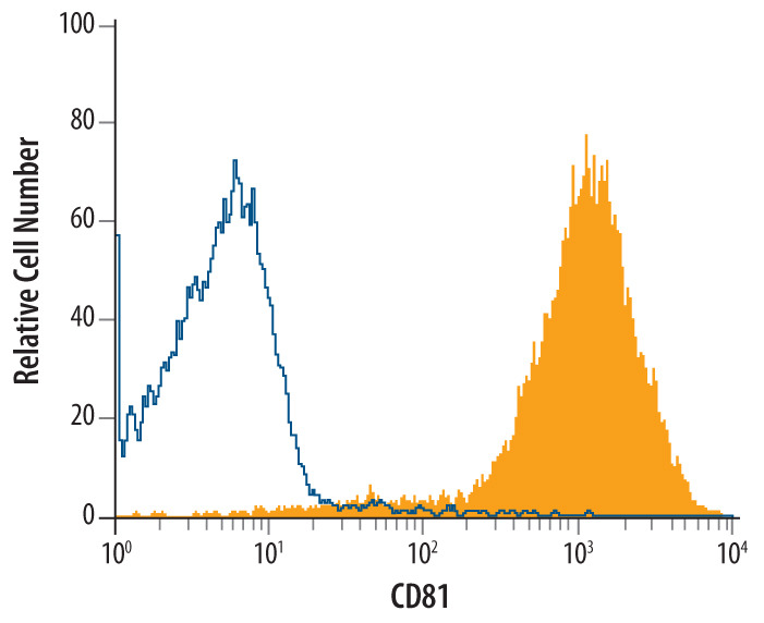 - Detection of CD81 in Human Lymphocytes by Flow Cytometry. Human whole blood lymphocytes were stained with Mouse Anti-Human CD81 Monoclonal Antibody (Catalog # MAB4615, filled histogram) or isotype control antibody (Catalog # MAB0041, open histogram), followed by Phycoerythrin-conjugated Anti-Mouse IgG F(ab')2 Secondary Antibody (Catalog # F0102B).