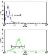 - Flow cytometry testing of human HEK293 cells with Peroxiredoxin 1 antibody; Blue=isotype control, Green= Peroxiredoxin 1 antibody.