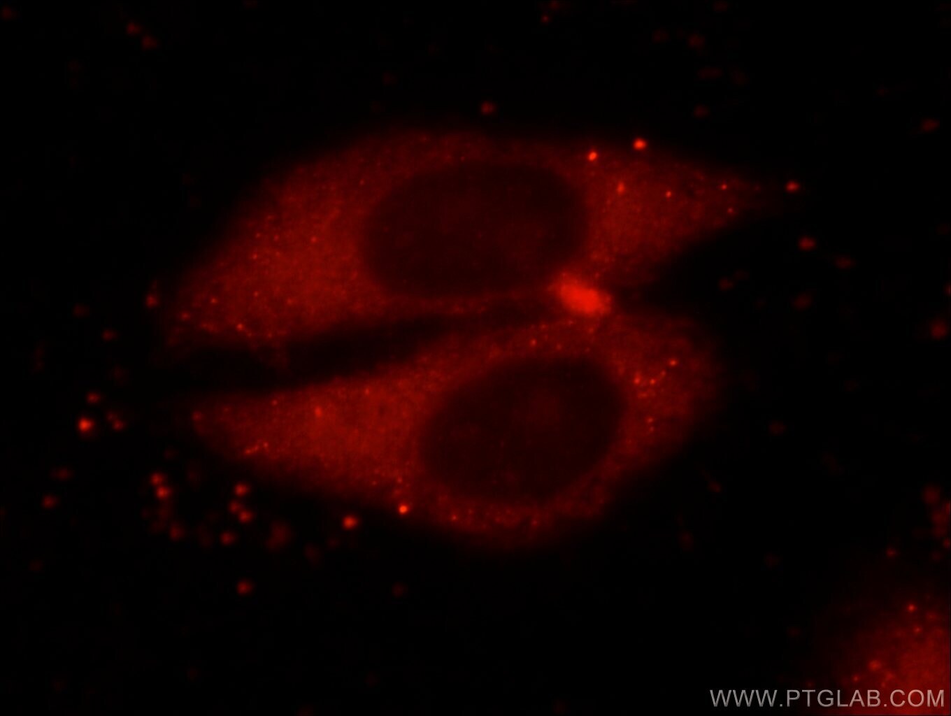 - Immunofluorescent analysis of HepG2 cells using 15816-1-AP (PRDX1 antibody) at dilution of 1:25 and Rhodamine-Goat anti-Rabbit IGG.