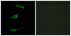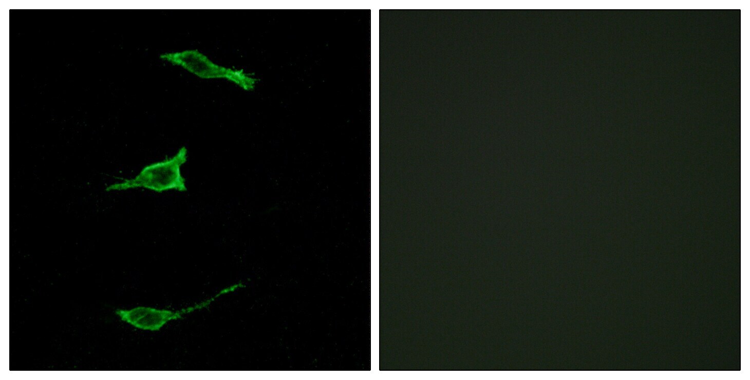- Immunocytochemical analysis of GPR40 in LOVO cells, using GPR40 Polyclonal Antibody (Product # PA5-67931). The picture on the right is blocked with the synthesized peptide.