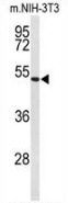- Western blot analysis of Fibulin-4(arrow) in mouse NIH-3T3 cell line lysates (35ug/lane) using Fibulin-4Â antibody Cat.-No. AP51375PU-NÂ (C-term).