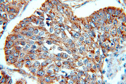 - Immunohistochemical of paraffin-embedded human lung cancer using 16855-1-AP(KRT10-specific antibody) at dilution of 1:200 (under 10x lens)