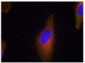 - Figure 2. Immunofluorescence staining of methanol-fixed HeLa cells using Synaptotagmin I/II antibody (Red).