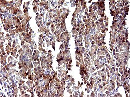- Immunohistochemical staining of paraffin-embedded Carcinoma of Human pancreas tissue using anti-LGALS3 mouse monoclonal antibody (TA506401) at 1:150 dilution.