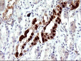 - Immunohistochemical staining of paraffin-embedded human Kidney tissue within the normal limits using anti-LGALS3 mouse monoclonal antibody (TA506401) at 1:150 dilution.