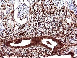 - Immunohistochemical staining of paraffin-embedded human endometrium tissue within the normal limits using anti-LGALS3 mouse monoclonal antibody (TA506401) at 1:150 dilution.