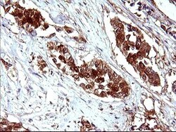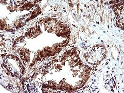 - Immunohistochemical staining of paraffin-embedded Carcinoma of Human prostate tissue using anti-LGALS3 mouse monoclonal antibody (TA506401) at 1:150 dilution.