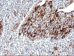 - Immunohistochemical staining of paraffin-embedded human lymphoma tissue using anti-LGALS3 mouse monoclonal antibody (TA506401) at 1:150 dilution.
