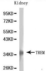 - WesternBlot (WB) analysis of TREM1 pAb in extracts from mouse kidney tissue.