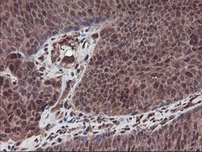 - Immunohistochemical staining of paraffin-embedded Adenocarcinoma of Human endometrium tissue using anti-SETD7 mouse monoclonal antibody. (Heat-induced epitope retrieval by 10mM citric buffer, pH6.0, 100°C for 10min, TA503322)