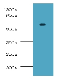 - Western blot All lanes: ATP-dependent RNA helicase DDX19A antibody at 2µg/ml + Mouse gonad tissue Secondary Goat polyclonal to rabbit IgG at 1/10000 dilution Predicted band size: 54, 44 kDa Observed band size: 54 kDa