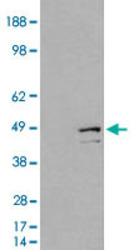- HEK293 overexpressing DAP3 and probed with DAP3 polyclonal antibody (Cat # PAB6163) (mock transfection in first lane), tested by Origene.