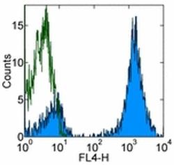 - Staining of normal human peripheral blood cells with Mouse IgG1 K Isotype Control APC (Product # 17-4714-81) (open histogram) or Anti-Human CD3 APC (filled histogram). Cells in the lymphocyte gate were used for analysis.