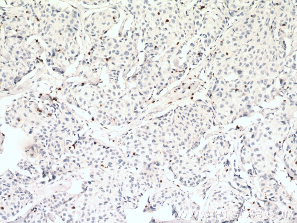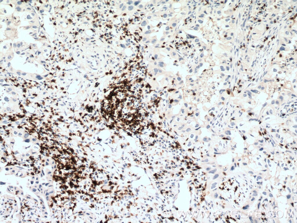 - Immunohistochemistry of paraffin-embedded human lung cancer tissue slide using 17617-1-AP (CD3 antibody) at dilution of 1:1000 (under 40x lens) heat mediated antigen retrieved with Tris-EDTA buffer (pH 9).