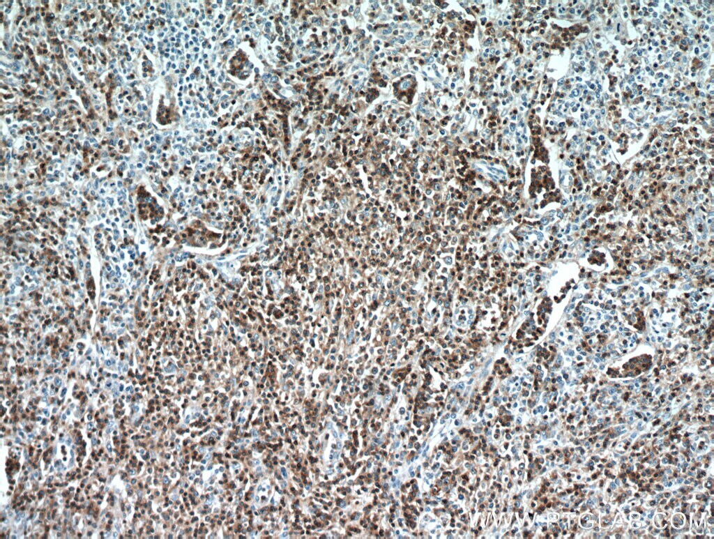 - Immunohistochemistry of paraffin-embedded human angioimmunoblastic T-cell lymphoma using 17617-1-AP (CD3 antibody) at dilution of 1:100 (under 10x lens).