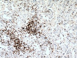 - Immunohistochemistry of paraffin-embedded human angioimmunoblastic T-cell lymphoma using 17617-1-AP (CD3 antibody) at dilution of 1:100 (under 40x lens).