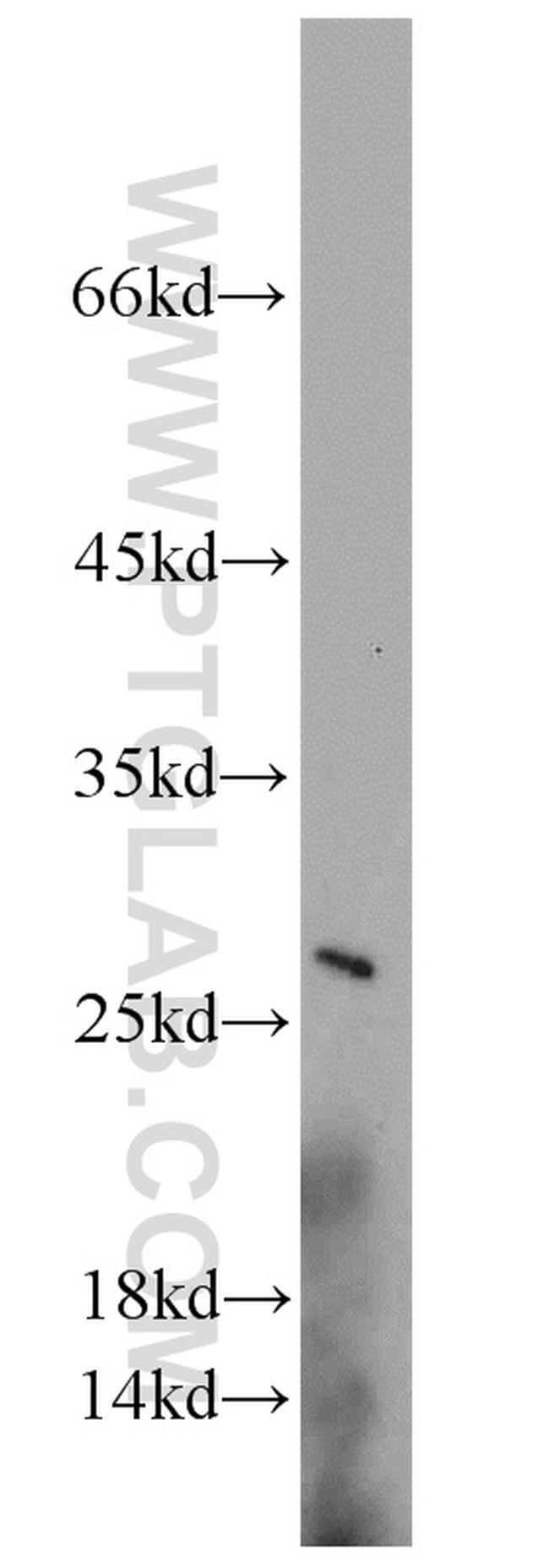 - PC-3 cells were subjected to SDS PAGE followed by western blot with 10124-2-AP (VGLL1 antibody) at dilution of 1:600 incubated at room temperature for 1.5 hours.
