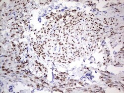 - Immunohistochemical staining of paraffin-embedded Adenocarcinoma of Human endometrium tissue using anti-PGR mouse monoclonal antibody. (Heat-induced epitope retrieval by 1 mM EDTA in 10mM Tris, pH8.5, 120°C for 3min, TA805108)