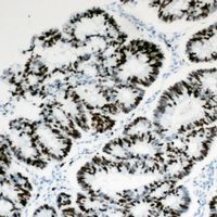 - Immunohistochemical analysis of HBP1 staining in human colon cancer formalin fixed paraffin embedded tissue section. The section was pre-treated using heat mediated antigen retrieval with sodium citrate buffer (pH 6.0). The section was then incubated with the antibody at room temperature and detected using an HRP conjugated compact polymer system. DAB was used as the chromogen. The section was then counterstained with haematoxylin and mounted with DPX.