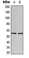 - Western blot analysis of HBP1 expression in SKBR3 (A); U937 (B) whole cell lysates.