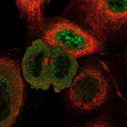 - Immunofluorescent staining of RUNDC1 in human cell line A-431 using a RUNDC1 Polyclonal Antibody (Product # PA5-54874) shows localization to nuclear speckles and cytosol.