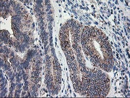 - IHC of paraffin-embedded Adenocarcinoma of Human endometrium tissue using anti-DLD mouse monoclonal antibody.