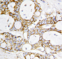- Immunohistochemical staining of paraffin embedded human breast cancer tissue section with DLD polyclonal antibody (Cat # PAB19540).