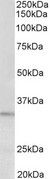 - EB011365 (0.3µg/ml) staining of HeLa lysate (35µg protein in RIPA buffer). Primary incubation was 1 hour. Detected by chemiluminescence.