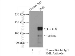 - IP result of anti-PML (IP:21041-1-AP, 4ug; Detection:21041-1-AP 1:500) with HEK-293 cells lysate 3200ug.