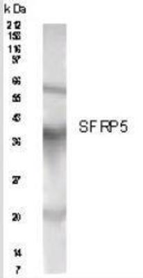 - Immunogen affinity purified. Reacts with residues 25-38 [APARCEEYDYYGWQ] of human SFRP5. 92% identity bovine. 85% identity rat. 78% identity mouse.