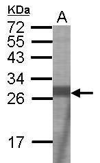 - Western blot experiment using IRF2 Antibody (GTX114038) at 1:30000 dilution to detect 100ng of 28kDa recombinant IRF2 protein antigen.