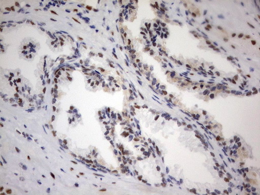 - Immunohistochemical staining of paraffin-embedded Human prostate tissue using anti-PARN mouse monoclonal antibody. (UM800040; heat-induced epitope retrieval by 10mM citric buffer, pH9.0, 120C for 3min)