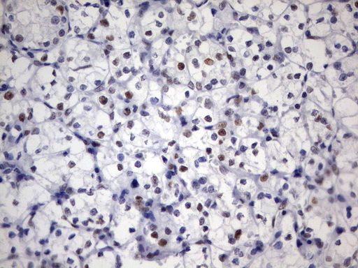 - Immunohistochemical staining of paraffin-embedded Carcinoma of Human kidney tissue using anti-PARN mouse monoclonal antibody. (UM800040; heat-induced epitope retrieval by 10mM citric buffer, pH9.0, 120C for 3min)