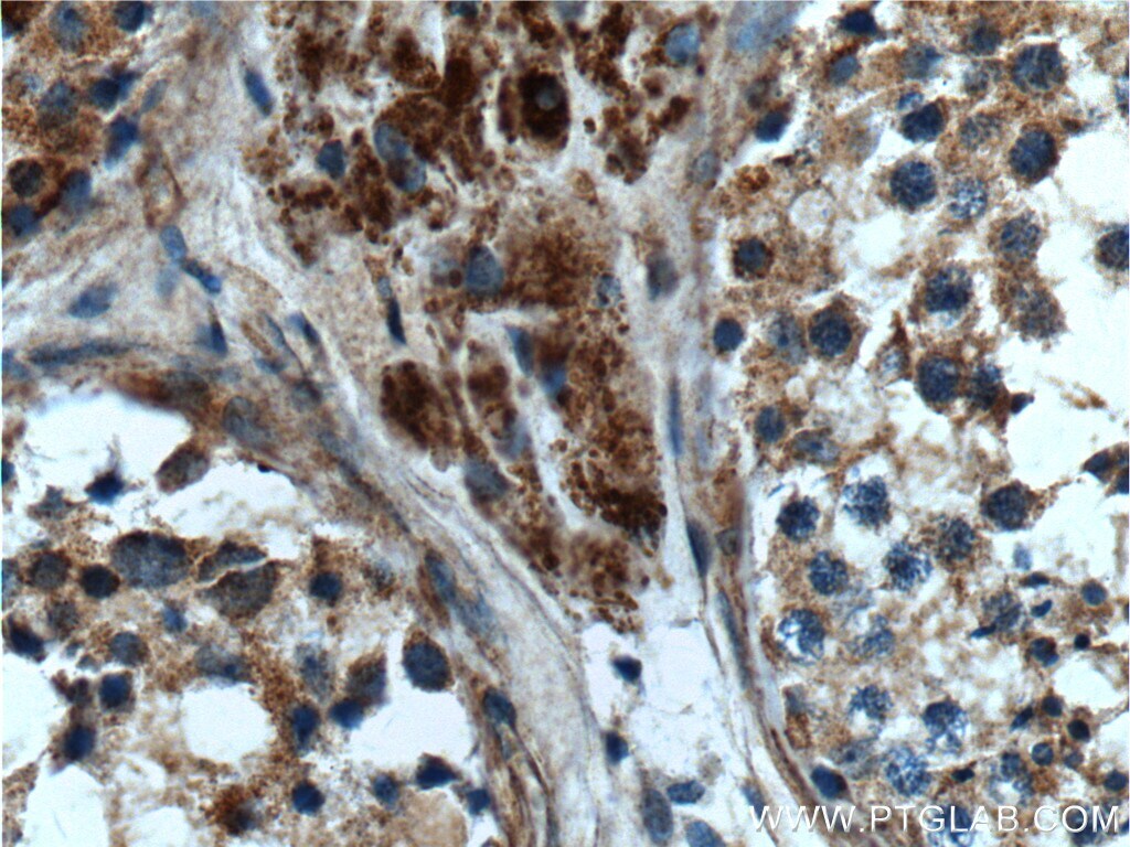 - Immunohistochemistry of paraffin-embedded human testis tissue slide using 10295-1-AP ( CIAO1 Antibody) at dilution of 1:50 (under 40x lens).