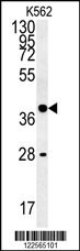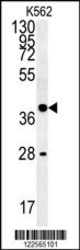 - WNT8B Antibody (C-term) (Cat. #AP13948b) western blot analysis in K562 cell line lysates (35ug/lane).This demonstrates the WNT8B antibody detected the WNT8B protein (arrow).