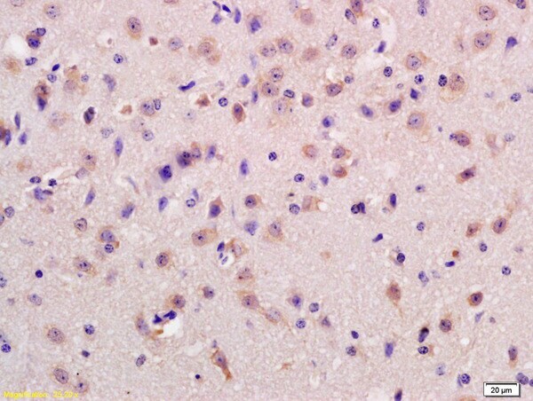 - Formalin-fixed and paraffin embedded rat brain labeled with Anti-GPCR GPR37 Polyclonal Antibody, Unconjugated (bs-13534R) at 1:200 followed by conjugation to the secondary antibody and DAB staining.