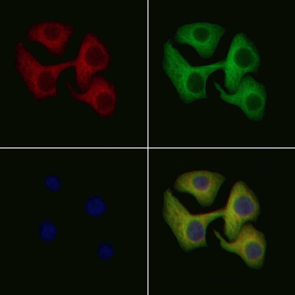 - Immunofluorescent analysis of IL1R2 in HeLa cells. Samples were fixed with paraformaldehyde, permeabilized with 0.1% Triton X-100, blocked with 10% serum (45 min at 25°C), incubated with mouse anti-beta tubulin and IL1R2 polyclonal antibody (Product # PA5-102514) using a dilution of 1:200 (1 hr, 37°C), and followed by goat anti-rabbit IgG Alexa Fluor 594 (red) and goat anti-mouse IgG Alexa Fluor 488 (green).