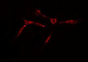 - Immunofluorescent analysis of TAF4 in NIH-3T3 cells. Samples were fixed with paraformaldehyde, permeabilized with 0.1% Triton X-100, blocked with 10% serum (45 min at 25°C) incubated with TAF4 polyclonal antibody (Product # PA5-101053) using a dilution of 1:200 (1 hr, 37°C), and followed by goat anti-rabbit IgG Alexa Fluor 594 at a dilution of 1:600.
