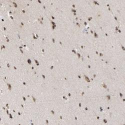 - Immunohistochemical staining of human cerebral cortex shows strong positivity in glial cells.