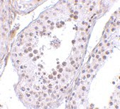- Immunohistochemistry of MED4 in human testis tissue with MED4 antibody at 10 ug/ml.