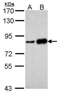 - Sample (30 ug of whole cell lysate) A: A431 (GTX27909) B: H1299 7.5% SDS PAGE GTX102175 diluted at 1:1000