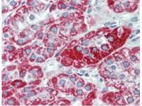 - IHC using anti-TRPC6 monoclonal antibody shows detection of TRPC6 in human adrenal (cortex) tissue (40X). The antibody was used a dilution to 2.5 ug/mL. The image shows strong staining with minimal background staining. Tissue was formalin fixed and paraffin embedded. No pre-treatment of sample was required. The image shows the localization of antibody as the precipitated red signal, with a hematoxylin purple nuclear counterstain.